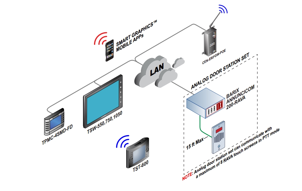 Компания Barix представила решение Annuncicom 200-Rava – двунаправленный интерфейс IP-audio для дверных станций, позволяющий реализовать внутреннюю связь на стандарте push-to-talk (PTT) при использовании сенсорных экранов Crestron c технологией Rava. Продукт Annuncicom попал в элитный список устройств с интеллектуальным управлением Crestron Connecteddevices для реализации местной связи со стабильной работой на базе технологий Crestron.