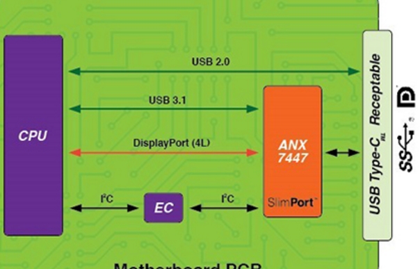 Фирма Analogix Semiconductor выпустила семейство компонентов SlimPort ANX7447 – одночиповых контроллеров портов USB с поддержкой спецификации USB PD ver. 3.0 и с мультиплексором DisplayPort Alt Mode. Чипы позволят задействовать новую технологию зарядки USB-C в схемах ноутбуков и настольных ПК.